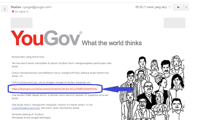 Keterangan Gambar 2.b Cara Daftar YouGov: Silahkan klik link activate seperti pada gambar diatas.